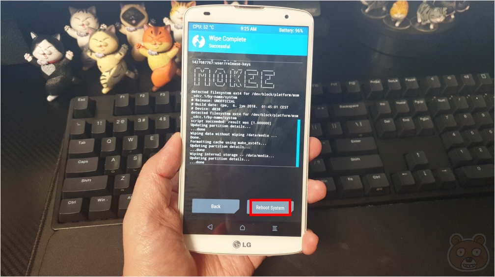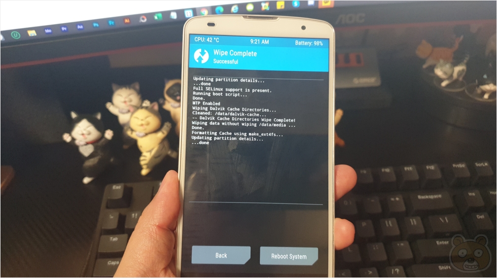 이제 모든 과정이 끝났습니다. Reboot System을 터치하여 스마트폰을 재부팅합니다.