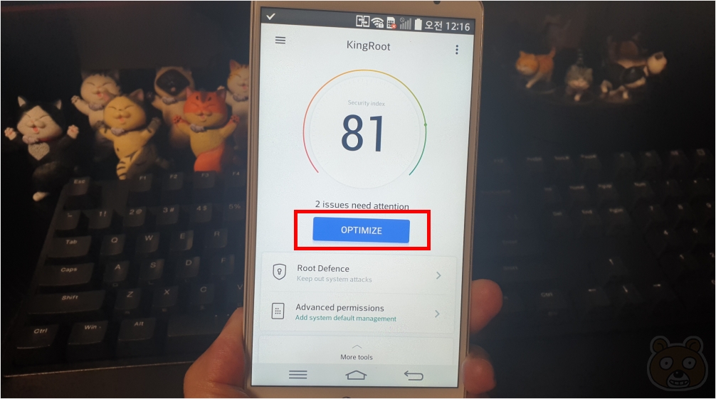 루팅은 엄청 쉽습니다. 설치를 다 하고 OPTIMIZE 버튼을 눌러주시면 됩니다. 그러면 지가(?) 알아서 다 합니다. 다 완료된 다음에는 폰이 재부팅됩니다. 이렇게 간단하게 루팅이 될 줄은 몰랐습니다. 그럼 다음 과정으로 넘어갑니다.