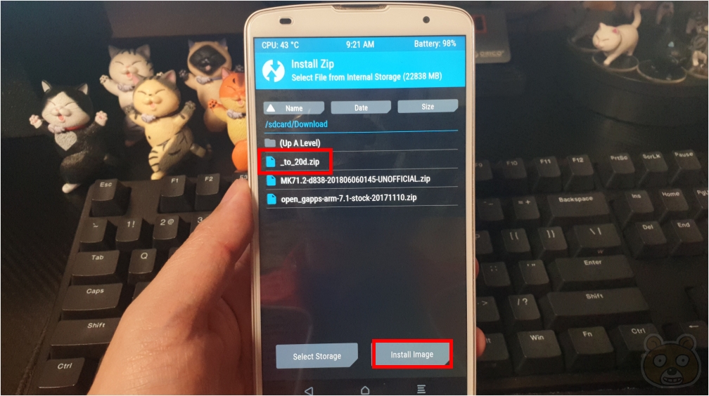 먼저 _to_20d.zip을 선택하고 Install Image 버튼을 터치합니다.