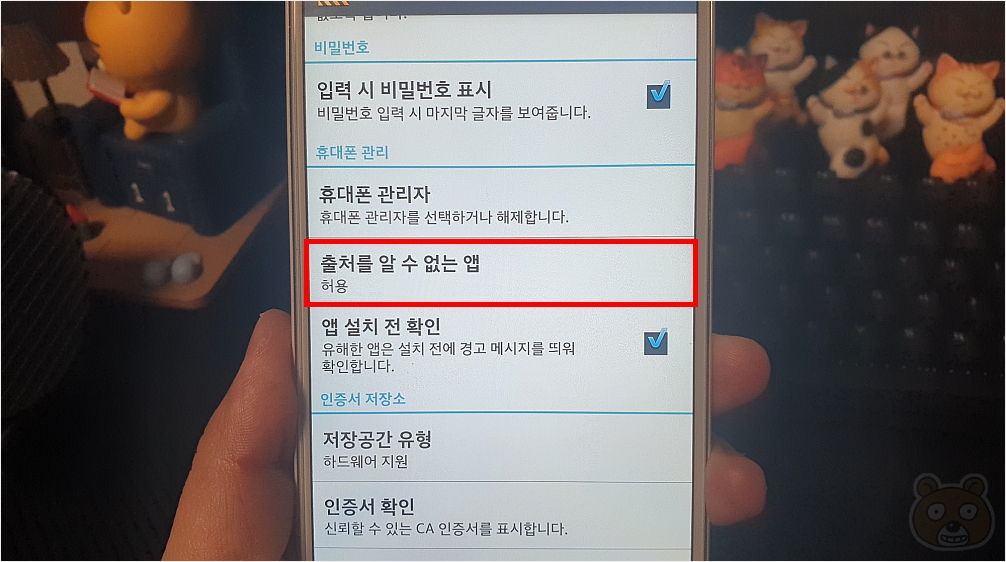 다음은 설정 > 보안으로 들어가서 출처를 알 수 없는 앱을 허용으로 변경해줍니다. 이제 모든 준비는 다 되었습니다. 본격적으로 작업해 봅니다.