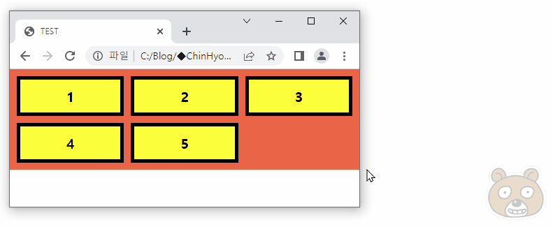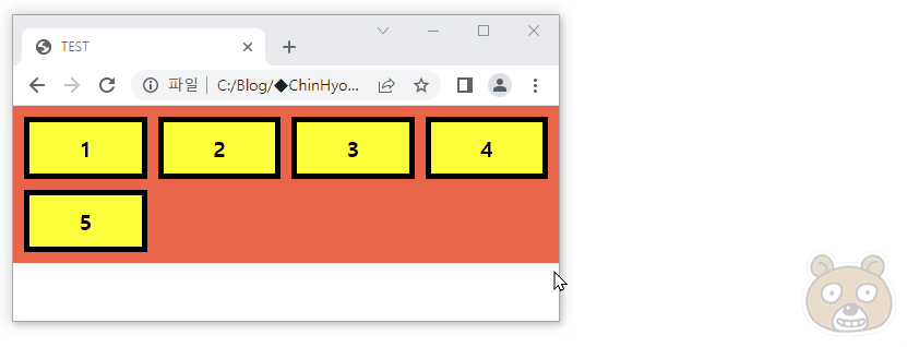 그렇습니다. 3개만 마크업 했으므로 1, 2, 3번 div만 가로 정렬되고 나머지 두개인 4, 5번 div는 아래로 밀려납니다.