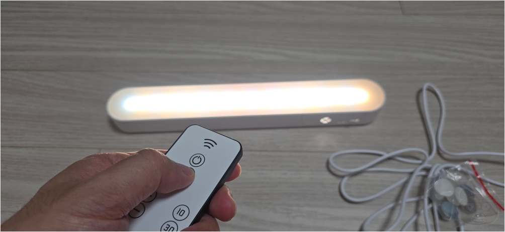 바로 테스트를 시도해 봅니다. 본체 전원 스위치를 누르지 않고 리모컨으로 간편하게 조작 가능합니다. 일단 백색 모드입니다.