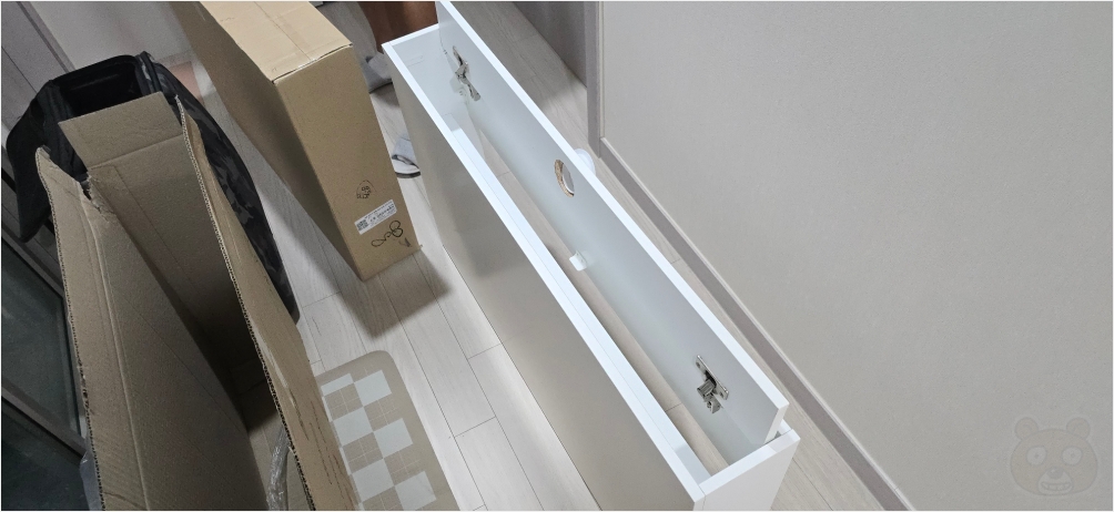 아씨방 틈새장은 이미 조립이 완료된 상태로 배송됩니다. 너무 편하군요.