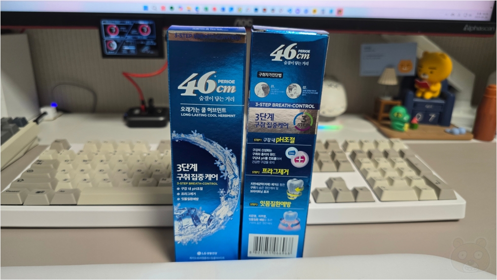 제가 딱히 구취가 있는것은 아니지만, 그래도 늘 신경써야 하는 부분이 구강 청결이라고 생각합니다. 더구나 서비스직에 있는 저이기에 더 신경 써야 하죠. 지금 사용중인 치약이 거의 다 떨어져 가기에 이번에 페리오에서 46cm 시리즈의 새 치약이 런칭되었다는 사실을 알게되었습니다. 사실 이 46cm 라는 브랜드는 과학을 보다의 유료 광고 콘텐츠를 보다가 알게된 것으로, 꽤나 과학적인 요소가 많이 들어가 있으며 브랜드의 인지도 또한 우수했기에 (물론 해당 채널의 콘텐츠는 섬유유연제 라인이지만~) 믿고 덜컥 구매한게 가장 큽니다. 역시 과학을 보다는 우수해요!