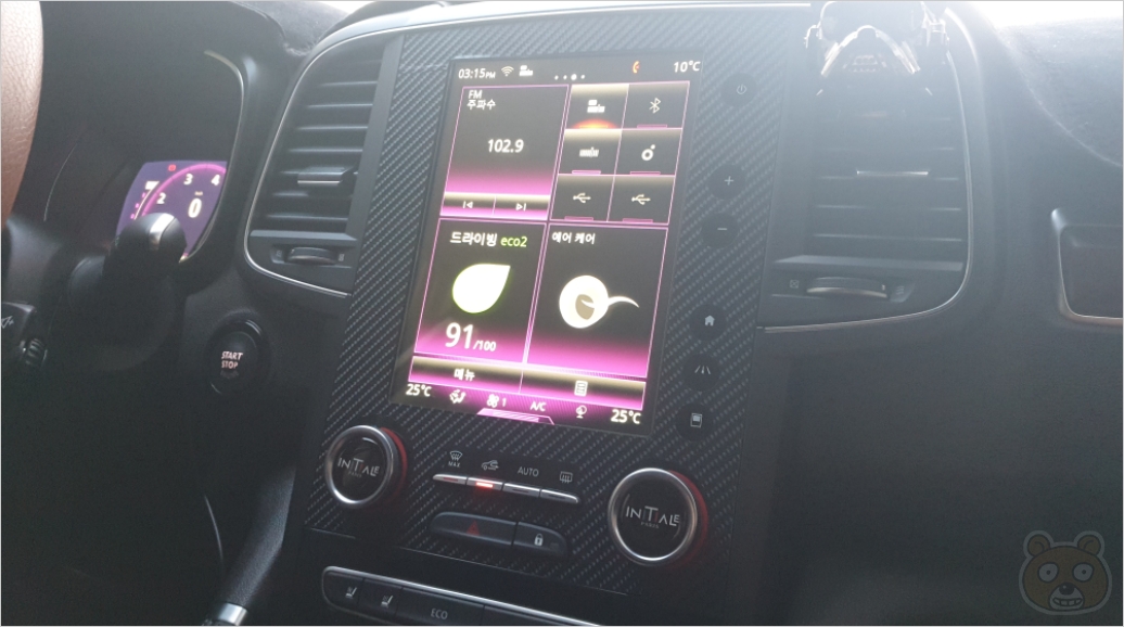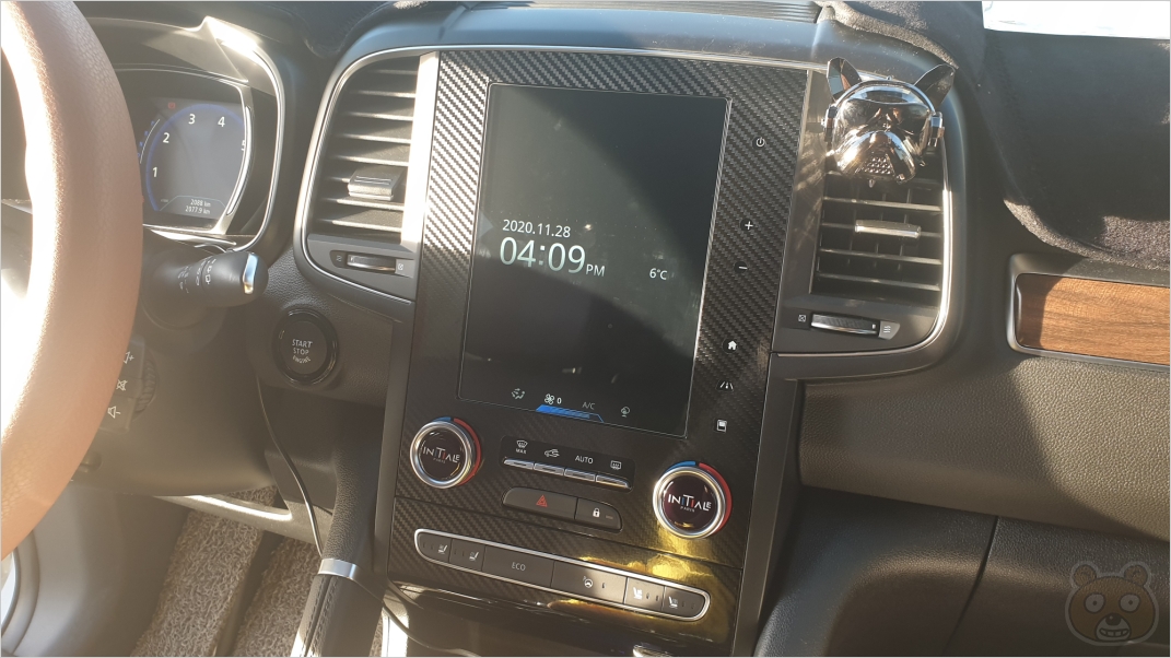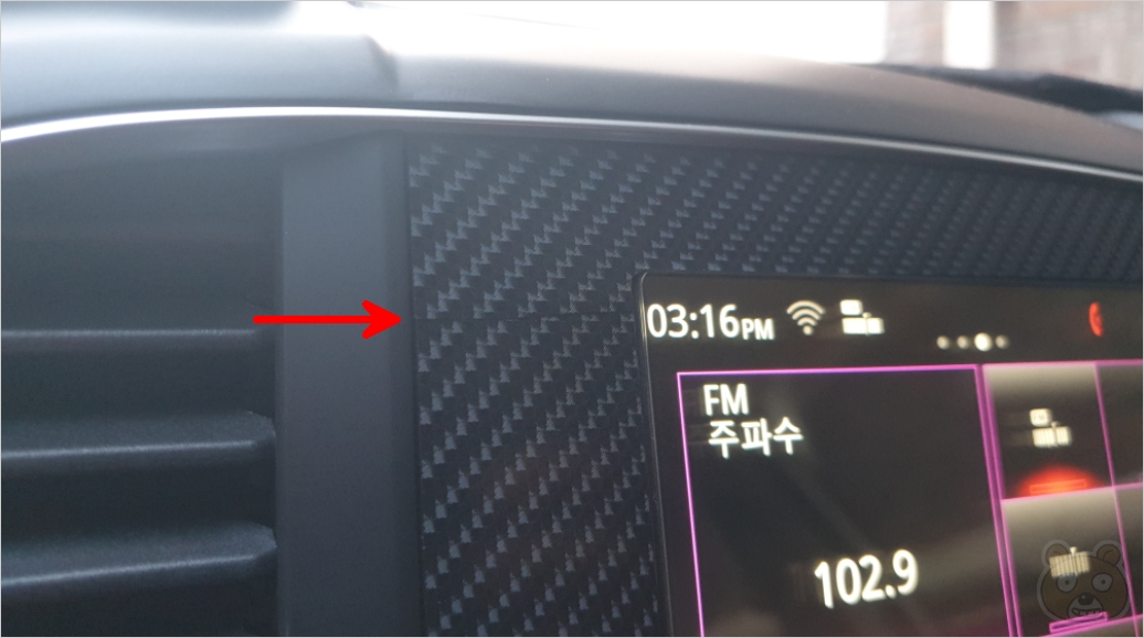 참고로 가장 복잡스러운 부분부터 붙여나가야 합니다. 여기 아래쪽부터 부착하시면 됩니다. 보시는 것처럼 버튼들이 많죠? 그래서 이곳을 가장 먼저 공략해야 합니다. 아래에서 위로 부착시키는것을 추천합니다. 퐁퐁을 살짝 섞은 물로 조금 뿌려서 부착하면 시공에 도움이 되긴 하는데 행여나 액체가 버튼 틈 사이로 들어갈까봐서 그냥 시트지 접착력으로만 시공했습니다. 다 부착하고나니 확실히 터치스크린 패널부가 한층 이뻐졌습니다. 시트지 가격 치고는 비용이 싼 건 아니지만 결과는 만족스럽습니다. 이 두 개의 상품 모두 N사에서 QM6 카본 시트지라고 검색하시면 어렵지 않게 상품을 찾을 수 있을겁니다. 끝.