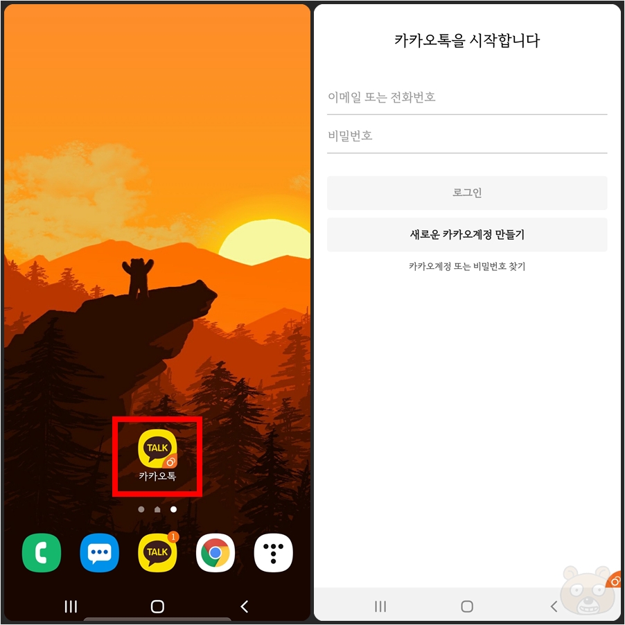 카카오톡 듀얼 메신저를 설치하시게 되면 이렇게 기존 카카오톡과 똑같은 아이콘 디자인에 오른쪽 하단에 동그라미 두개가 들어있는 앱이 생성됩니다. 말 그대로 카카오톡의 클론(복제) 버전입니다. 카톡 듀얼앱을 실행하시면 카카오톡 처음 실행 화면처럼 계정 만들기부터 진행이 가능합니다. 여기에 새로 발급받은 듀얼 번호를 입력하여 가입을 진행하시면 되는 것입니다. 기존 연락처 인맥들과 완전 따로 분류할 수 있는 가장 좋은 방법이지요. 끝.