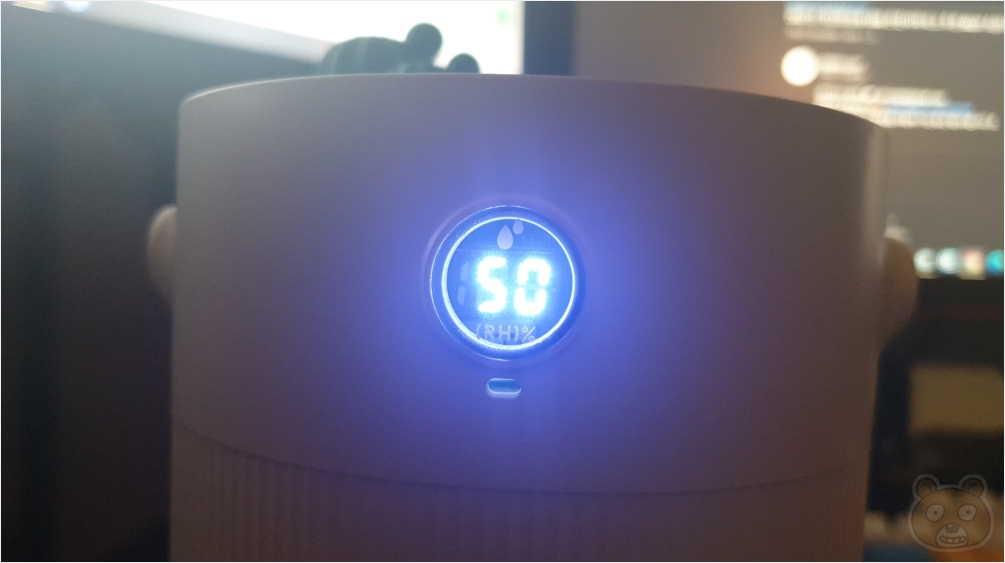 정면부입니다. 전원을 켜면 LED창에 숫자가 표시되는데 습도를 의미합니다.