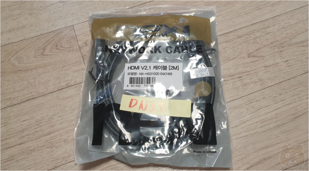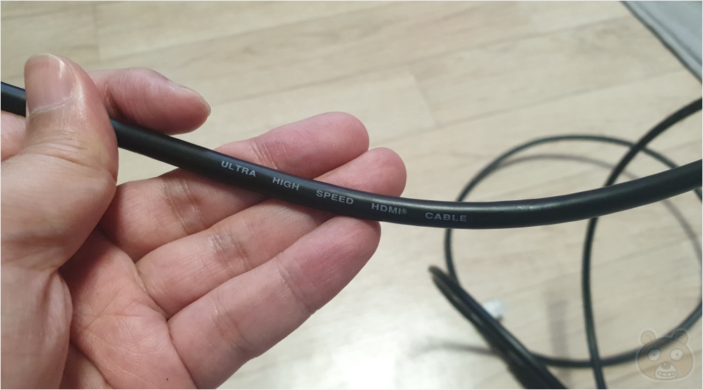 이미 가지고 있는 HDMI 케이블들이 많은데 2.1 버전은 첫 구매이므로 넥시 로고 뒷면에 따로 표식을 해두었습니다. 수성펜으로 적었기에 글자 위에 스카치테이프를 발라 코팅해주었습니다. HDMI 2.1의 최대 데이터 전송 용량은 자그마치 48Gbps 입니다. 물론 연결되는 대상 디스플레이도 이 데이터양을 감당할 수 있는 수준이어야 제대로 동작할 것입니다.