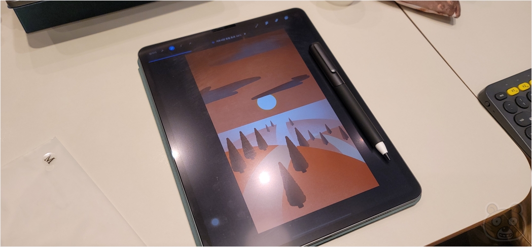 음료와 와플을 맛나게 먹고 테이블을 어느정도 비운 후 좀 더 그림 작업을 이어나갔습니다. 이야기도 재밌게 하고요. 오랜만에 모여서 그런지 생각보다 너무 재밌었습니다. 오후 3시에 모여서 저녁 9시 30분에 마무리가 되었습니다. 슈퍼드로잉 오프라인 모임 중 가장 장시간 모임이 되어버렸습니다. 이제 슈퍼드로잉 오프라인 모임을 좀 자주 할 생각입니다. 확실히 집에서는 작업이 안 됩니다. 이렇게 그림 그리는 환경을 만들어야 뭐라도 하게 되는 것 같습니다. 다음 모임이 기대가 됩니다. 끝.