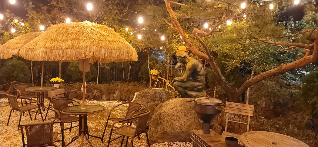 라멘집이 협소한 골목에 위치했기에 주차하기가 쉽지 않을거라고 판단! 그래서 이 동네에 오면 늘 주차하는 공간이 있었는데 해당 공간은 아파트가 들어서면서 사라진 상태였습니다. 저도 이번에 알았어요. 다행스럽게도 아파트 근처에 주차 공간이 있었고 그곳에 주차 후 라멘집까지 걸어가는데 뭔가 조명이 이쁜 집이 하나 있더군요. 자세히보니 커피숍이었습니다. 정말 이뻤습니다. 라멘 먹고 3차로 여기에서 그림그리고 토킹어바웃을 나누면 될 것 같았고 다들 생각이 통했기에 이곳에서 모임의 마지막 시간을 불태웠습니다.