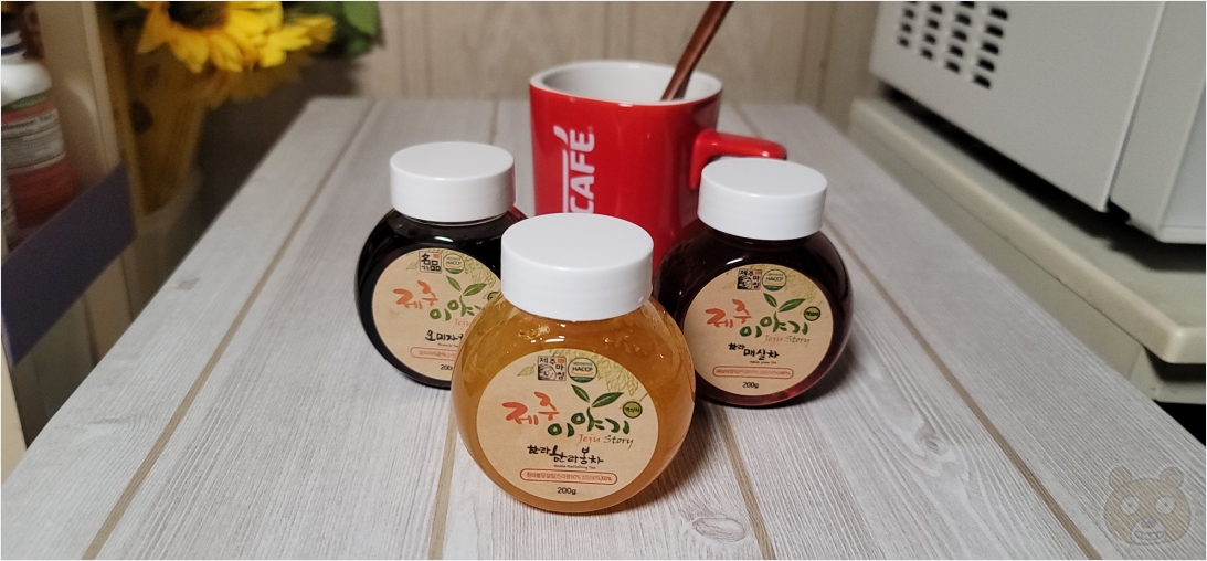 이후에 이 제품에 대해서 검색을 해봤습니다. 우선 제조사는 (주)제주사랑농수산이라고 하는 곳에서 만드는 차입니다. 꼬마 3종 세트라고 한라봉, 오미자, 매실차 맛입니다. 가격도 괜찮네요. 비싸지 않습니다. 식품안전관리인증인 HACCP 인증을 받았구요. 청정 제주에서 자란 싱싱한 원료로 제조 1개월 이내의 신선한 제품만을 선발한다고 하는데... 이건 뭐 직접 본게 아니니까 잘 모르겠습니다. 아무튼 맛은 있습니다.