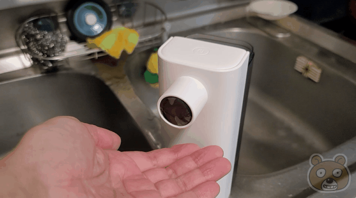 다행히 양품입니다. 최초 실행시에는 펌핑 작업을 5회 내외로 작동해야 합니다. 내부 펌프에 용액이 충분히 공급되도록 만들어줘야 하니까요. 구매 후기글을 보니까 어쩌다 불량품이 좀 있는 모양인데 이번에는 뽑기 운이 좋았습니다. 두개 모두 양품입니다. 작동 중일때는 작동 램프가 하얀색으로 은은하게 켜졌다 꺼졌다를 반복합니다. 보시는 것처럼 펑핑 상태가 매우 좋습니다. 양도 적당하구요. 펌핑양을 조절하는 기능은 없지만 개인적인 기준에서는 이 정도면 적당하다고 생각합니다.