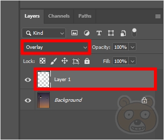 새 레이어의 블랜드 모드를 오버레이(Overlay)로 변경합니다.