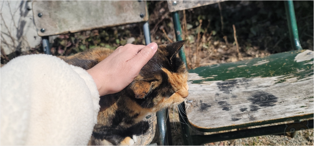 바로 옆 의자에 살포시 앉아봤습니다. 그랬더니 바로 무릎으로... (감동) 올라옵니다. 무게가 상당했지만 너무나 행복합니다. 그리구 또 저렇게 그루밍을 해줘요. (엉엉...)