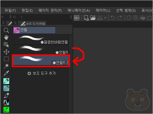 차이점을 알아보기 위해서 이번에는 아예 다운로드 받은 브러시를 추가해 보았습니다.