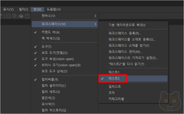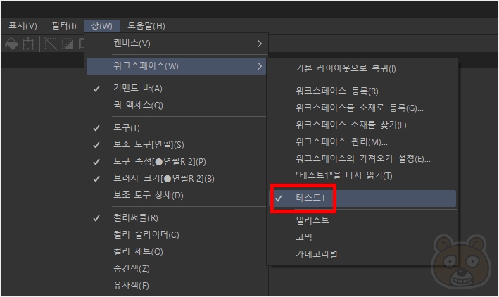 클립스튜디오 페인트에도 포토샵과 마찬가지로 작업 UI 환경을 저장하는 워크스페이스 기능이 존재합니다. 어느 날 지인이 이런 퀘스트를 내주셨습니다.