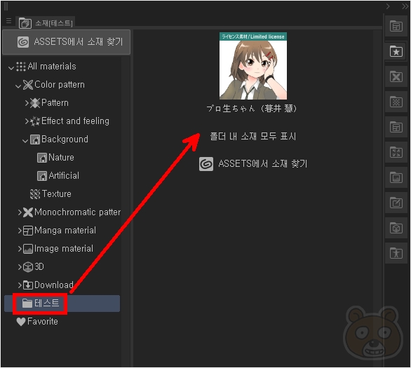 소재 창에서도 새로운 폴더를 만든 후 대충 소재를 아무거나 추가해 보았습니다.