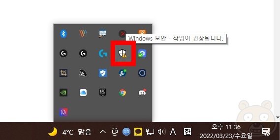 윈도우 디펜더 실행 아이콘은 위의 이미지처럼 생겼습니다. 방패 모양입니다. 더블 클릭해서 윈도우 디펜더 창을 띄웁니다.