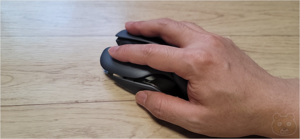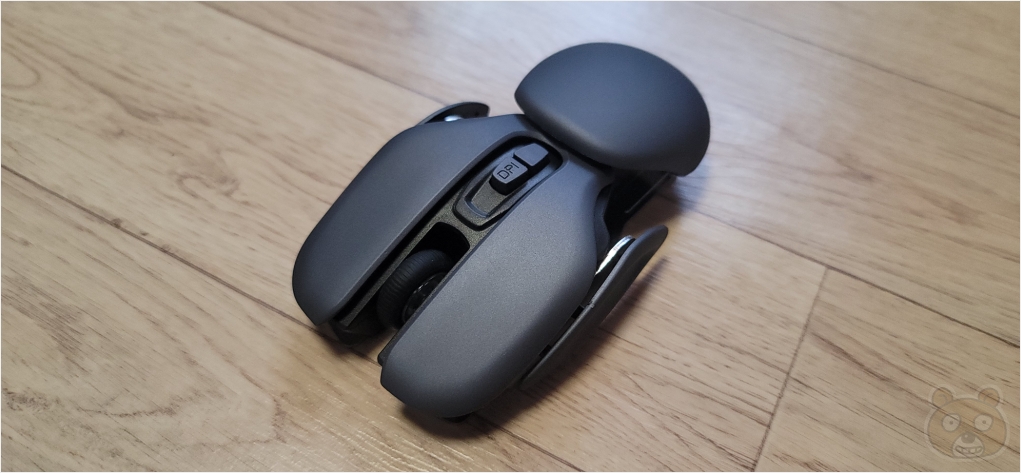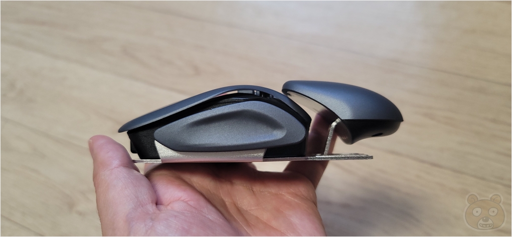 사이즈는 의외로 큽니다. 제 손이 작은 편인데 완벽하게 포갤 수 없었습니다. 그리고... 클릭음 부분인데 여느 마우스와 똑같습니다. 딸깍딸깍 아주 찰진 소음이 납니다. 무소음 마우스가 절대로 아닙니다.