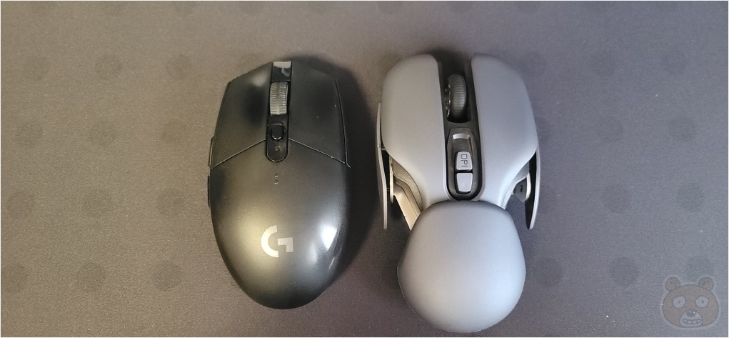 높이는 둘 다 엇비슷한데 G304는 중앙 부분이 볼록하고 PX2는 뒷부분의 동그란 프레임이 가장 높습니다. 그래서 그립감이 완전 다릅니다. PX2 무선 마우스를 평생 사용할 생각이라면 한동안 적응 시간이 필요할 것 같습니다.