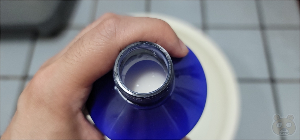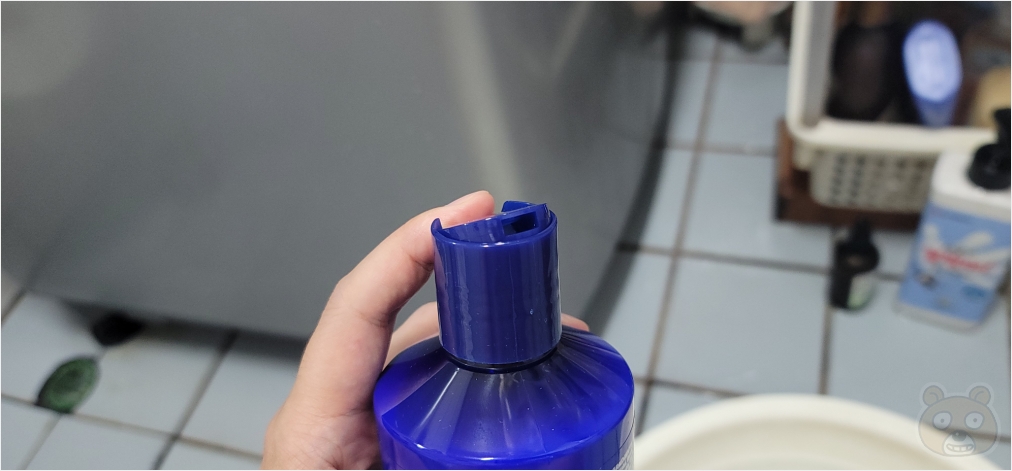 뚜껑은 스위치 타입입니다. 펌핑 타입보다는 이런 뚜껑을 선호합니다. 이래야 내용물을 끝까지 사용할 수 있기 때문이지요. 알뜰하게 쓸 수 있는 타입이라고 생각합니다.