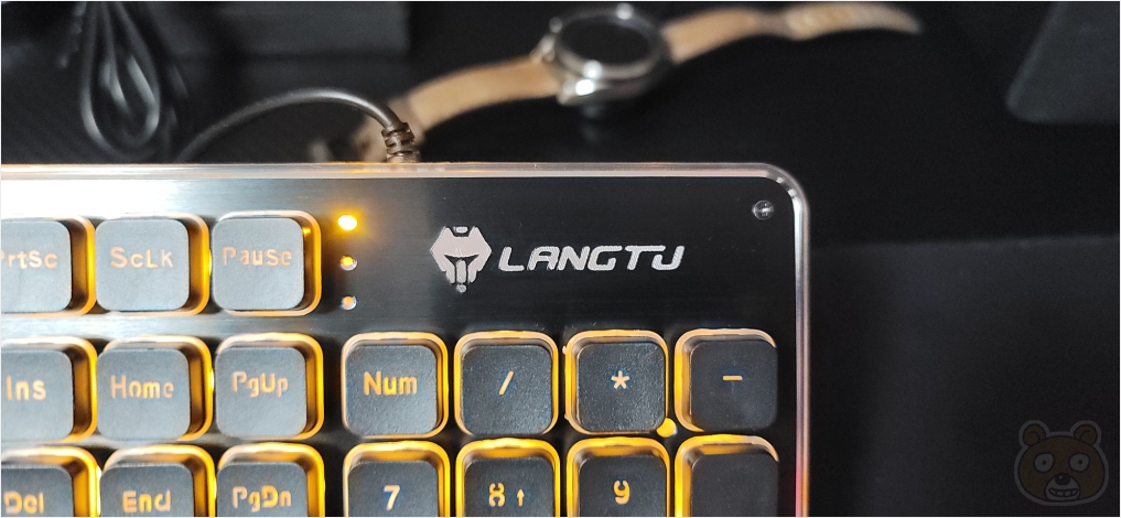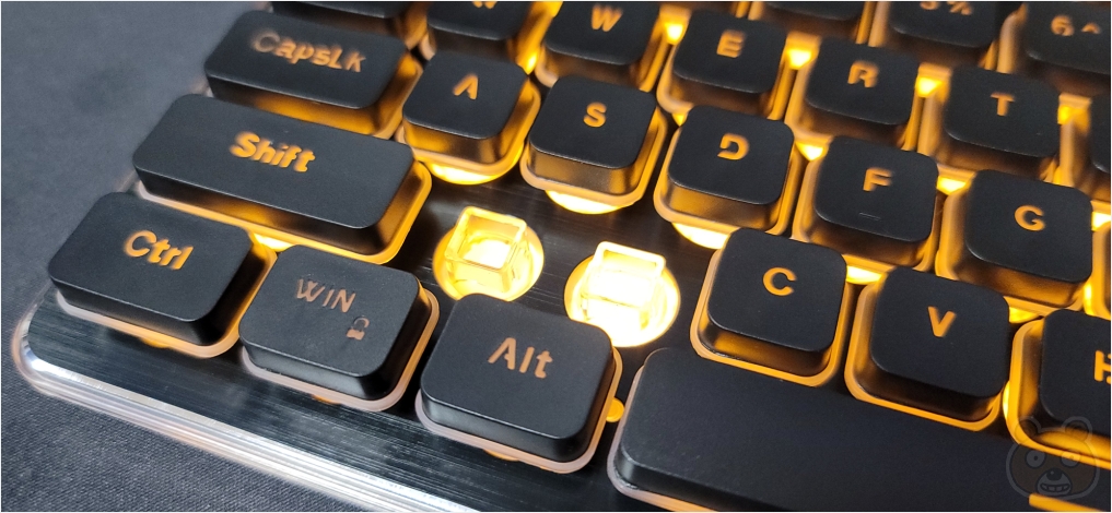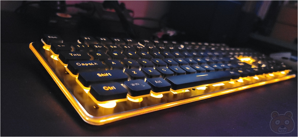 LED의 영롱함이 티가 잘 나지 않아서 방을 최대한 어둡게하고 찍은 사진입니다. 왠지 겨울과 잘 어울리는 키보드입니다. 따사로움이 느껴집니다.