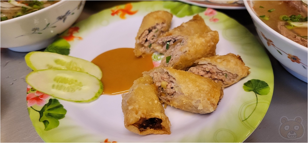 아~ 이거 짜조! 이거 참 맛있습니다. 제 음식 취향은 겉바속촉 스타일을 되게 좋아하는데 짜조가 딱 그 식감을 만족시켜줍니다. 겉은 진짜 바삭합니다. 그리고 속은 고기로 꽉 차 있어서 촉촉합니다. 되게 뜨겁습니다. 그래서 좀 식힌 후 먹었습니다. 맛있어서 한 접시 더 주문했습니다.
