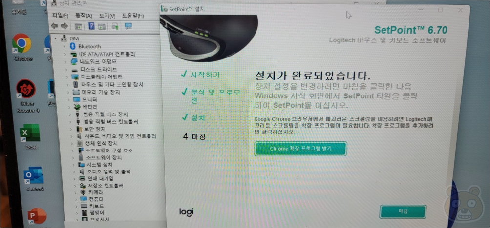 이렇게요. 위의 사진처럼 기타 장치로 남아있던 로지텍 관련 디바이스가 말끔히 사라졌음을 확인할 수 있습니다. SetPoint 소프트웨어도 정상 설치되었습니다. 참고로 로지텍 SetPoint는 로지텍 마우스의 기능을 커스텀하는 프로그램입니다. 키 설정이나 무선 마우스의 경우 배터리 부족 경고등을 받을 수 있죠. 기타장치 드라이버 때문에 어쩔 수 없이 세트포인트를 설치했지 사실 그냥 일반적으로 마우스를 사용할 목적이라면 커스텀할 필요는 없습니다. 아무튼 로지텍 관련 기타 장치 문제를 간단히 해결할 수 있어서 다행입니다. 끝.