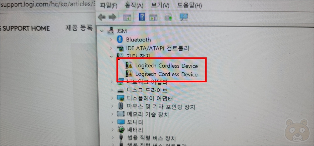 이번에도 친구 노트북을 포맷하고 윈도우11로 설치하는 과정에서 발생한 사건(?)입니다. 보통 마우스 드라이버를 별도로 설치해주는 경우는 극히 드뭅니다. 그런데 이번에 그 드문일에 당첨된 것입니다. 원인은 로지텍 무선 마우스! 녀석의 무선 마우스는 로지텍 M325 제품입니다. 2.4Ghz + 블루투스 듀얼 무선 연결을 지원하는 마우스 제품이죠. 근데 이게 리시버만 꽂으면 자꾸 기타 장치에 Logitech Cordless Device 라는 장치가 나타나는 문제였습니다. 로지텍 홈페이지에 들어가서 M325 관련 드라이버가 있는지 찾아봤으나 없었습니다. 펌웨어만 있을 뿐이었죠. 펌웨어는 기타장치와 무관합니다.