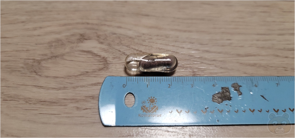 크기는 약 2.2cm 정도 됩니다. 캡슐은 크지 않아서 어렵지 않게 삼킬 수 있습니다.