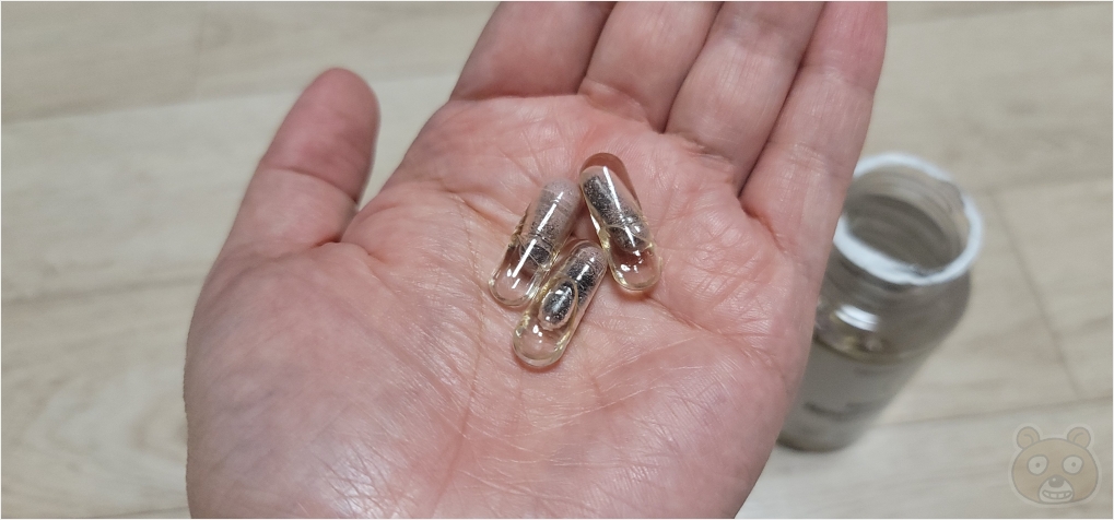 이 제품은 상당히 독특한 캡슐 형태를 취하고 있습니다. 2중 캡슐로 되어있어요. 뭔가 곤충의 번데기 같기도 하구요. 신기했습니다. 이 기술을 캡슐-인-캡슐이라고 부릅니다. 1차 캡슐에서는 빠르게 체내에 흡수되는 녀석들을 담고 있습니다. 그래서 액상 형태지요. 그 안쪽에 존재하고있는 2차 캡슐은 천천히 흡수되는 핵심 영양소가 들어있습니다.