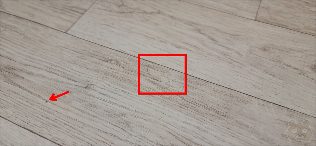 일부러 머리카락을 한 가닥 뽑아내서 방바닥에 살포시 올려보았습니다. 찍고보니 장판에 저렇게 검정색 점도 찍혀있군요. 손으로 문질러도 잘 안 지워지는것을 보아하니 알코올로 제대로 지워봐야 할 것 같습니다. 마침 잘 되었습니다. 포토샵의 이 기능으로 한방에 없애보겠습니다.