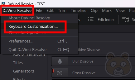 다빈치 리졸브를 실행합니다. 그리고 왼쪽 맨 상단에 있는 DaVinci Resolve 메뉴를 눌러서 Keyboard Customization으로 들어갑니다.