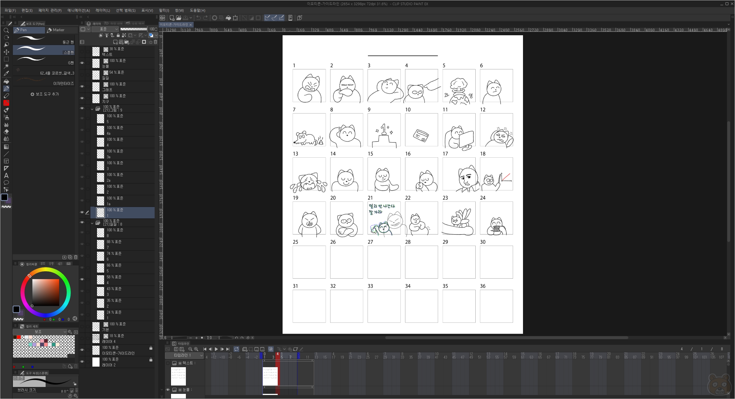 현재 저는 클튜로 움티(움직이는 이모티콘)에 도전 중입니다. 확실히 이모티콘 작업은 프로크리에이트보다는 클립스튜디오가 훨씬 편하다고 생각합니다. 수정하는게 정말 편해요. 이유는 백터레이어 때문이죠. 아무튼 이러한 이유로 열심히 클튜에서 작업 중입니다. 일단 시안은 완성되었으니 저장을 해봅시다.