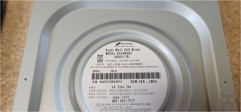 모델명이 GH24NSB0 이네요. 검색해보니 CD쓰기는 최대 40배속, DVD쓰기는 최대 16배속을 지원하는 ODD입니다. 추억돋네요.