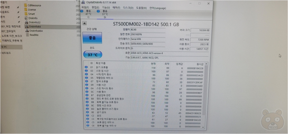 SSD와 HDD 상태를 크리스탈 디스크 인포를 통해 검사해 봤는데 모두 이상 없었습니다. 매장에서 잔잔하게 사용되었던 PC여서 그런지 큰 상처는 없습니다. 하드웨어적으로 문제가 없음을 확인했으니 이제 녀석이 부탁했던 중요 데이터만 별도로 빼내고 저장장치는 몽땅 깨끗하게 공장초기화(로우포맷)해서 당근마켓에 싸게 내놓을 예정입니다. 얼마에 올리면 좋을지 고민 좀 해봐야겠군요. (씨익) 10년된 컴퓨터도 간단 사무용도로 활용한다면 아직은 충분히 제 역할을 수행할 것으로 믿어 의심치 않습니다. 내부 청소는 완벽하게 했으니 구매하시는분도 분명 만족스러워 하실 겁니다. 끝.