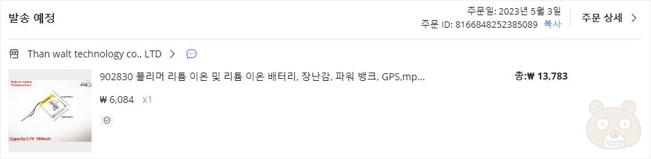 역시... 알리는 사람 빼고 다 팝니다. 배터리 사이즈를 측정해보니 약 30 x 27 x 8 mm 정도 되더라고요. 따라서 이 크기와 비슷한 배터리를 찾으면 됩니다. 위의 링크에 있는 배터리는 리튬 폴리머라고 명시되어있지만 리튬 이온이나 폴리머의 기본 스팩은 같습니다. 폴리머가 들어가는 경우에 다양한 형태의 배터리를 제작할 수 있는 장점이 있어서 리튬 이온 베이스에 폴리머를 집어넣는 것입니다. 또한 폴리머가 첨가되면 안전성도 향상됩니다. 이런 이유로 내장배터리에는 리튬-폴리머가 많습니다. 3.7V에 용량은 기존 대비 200이나 더 늘어난 900mAh입니다. 사이즈도 거의 비슷합니다. 그러면 어떻게 해본다?!
