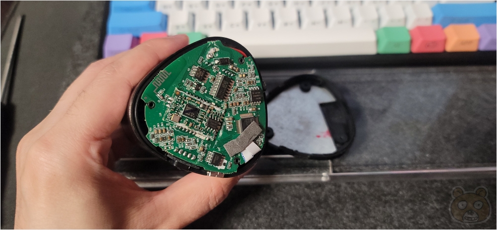 나사 3개를 제거하니까 바닥 커버는 쉽게 빠집니다. 기판이 드러났습니다. 그러면 PCB 회로판도 조심스럽게 위로 들어올리면 될 것 같습니다. 단 선이 연결되어있을테니 너무 힘 줘서 확 들어올리면 단선의 위험이 있으므로 매우 신중하게 조금씩 들어올립니다.