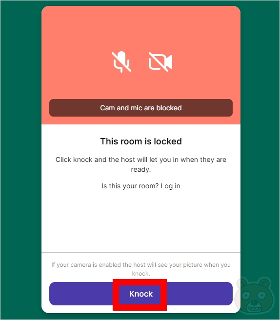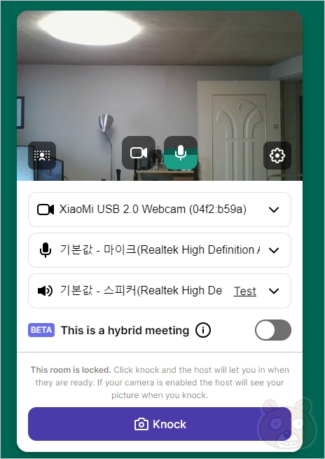 접속한 웨얼바이 주소가 잠김 상태면 This room is locked 라는 안내 메시지가 나타날 것입니다. Knock 버튼을 눌러서 호스트에서 접속 권한 요청을 보냅니다.