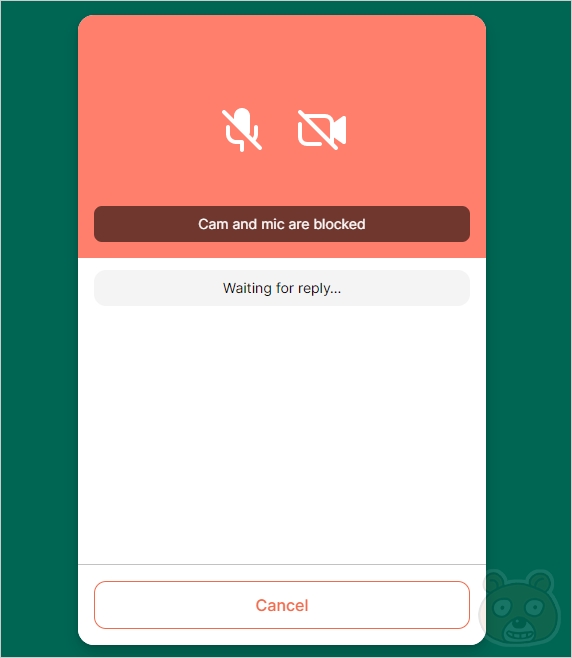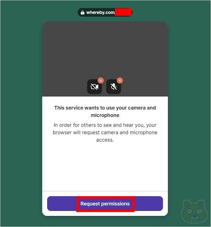 그러면 호스트에서 설명드린 것처럼 마이크와 캠을 요구한다는 안내창이 보일 것입니다. Request permissions 버튼을 누릅니다.
