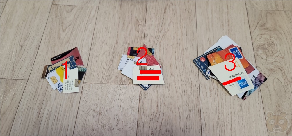 이 잡것들을 모두 한 개의 휴지통에 버리는것이 아닙니다. 각자 따로 버립니다. 기왕이면 시간차로 처분하는게 좋습니다. 월 간격이면 더욱 좋습니다. 저는 월 간격으로 처리했습니다. 예를 들어 이번 달인 5월부터 실행한다면 1번 카드 파츠를 5월에 버리고, 2번은 6월 말에, 3번은 7월 말에 버리는 것입니다. 이렇게 버리면 완벽하게 개인 정보는 소실될 것입니다. 어떤 미친놈이 이 카드를 드래곤볼마냥 모아서 사적으로 쓰겠다는 매우 강력한 의지를 갖지 않고서야 거의 불가능에 가까울 것입니다.