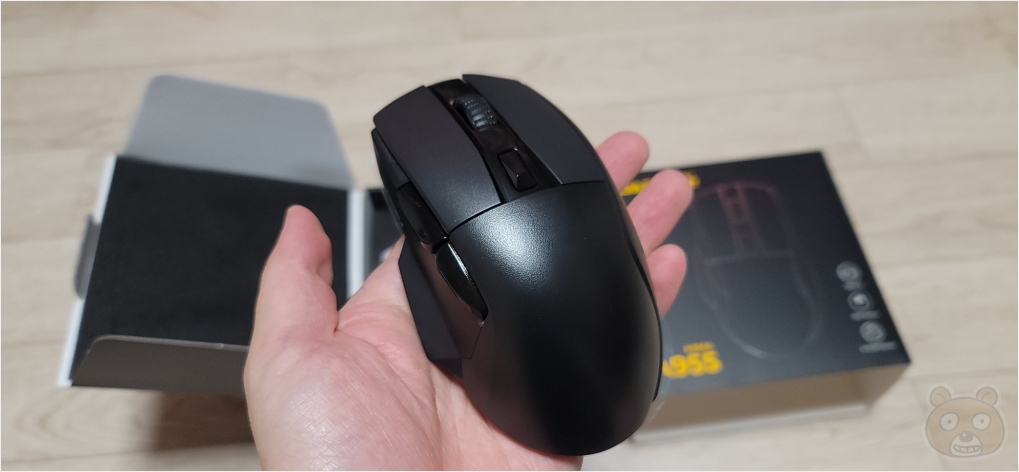 확실히 기울어진게 손목에게는 편함을 제공합니다. 또한 오른쪽 손가락을 거치할 수 있는 지지대도 있어서 좋습니다. 인체공학적 설계는 다얼유 A955가 한 수 위입니다. 물론 오른손잡이 한정입니다.