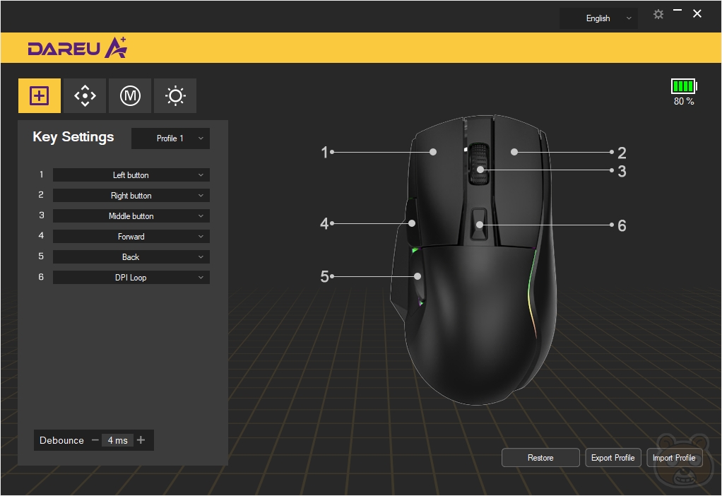 다얼유 A955도 레이저 브랜드 제품과 비슷한 전용 소프트웨어를 제공합니다. 키 세팅부터 RGB 컬러 수정까지 대체로 자유롭습니다. 관련 소프트웨어는 아래의 공식 홈페이지에서 다운로드 받을 수 있습니다.
