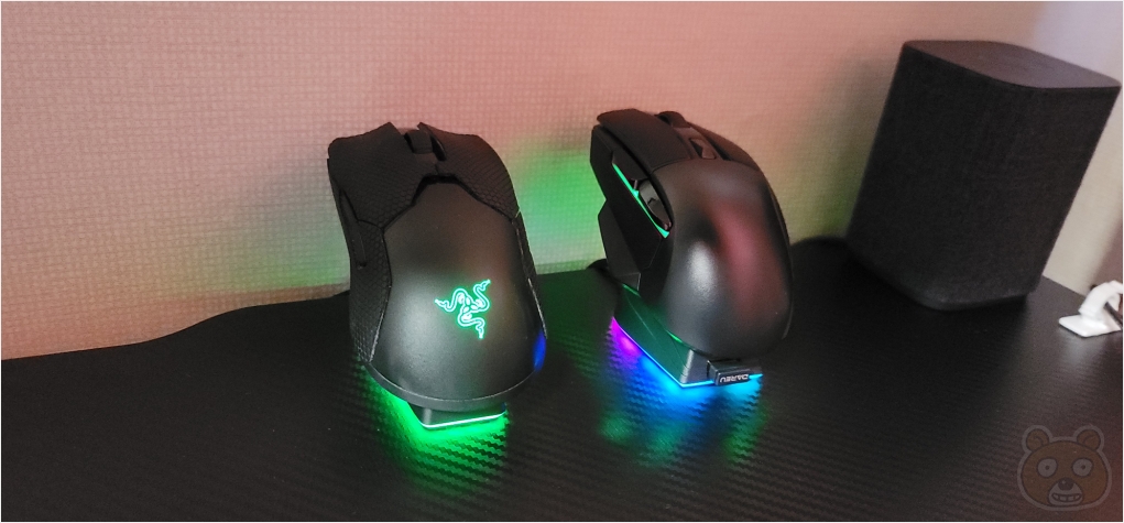 충전중인 두 마우스의 모습입니다. 이제 저는 이 둘 중에서 아무거나 마음에 드는 마우스를 골라 사용하면 되는 것입니다. 아유 이거 너무 흡족스럽습니다. 역시 마음에 드는 마우스를 골라서 쓴다는 선택지가 있다는건 매우 행복한 일이라고 생각합니다. 일단 주력으로 사용중이던 레이저 바이퍼 얼티메이트와 비교를 할 수 밖에 없는 상황이 되어버렸으니 경험담을 최대한 우겨넣어 보겠습니다.