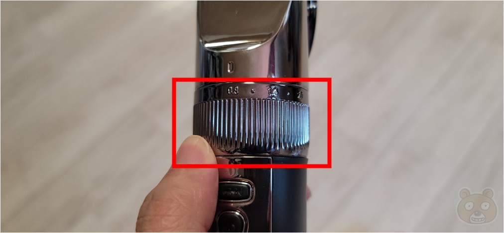 0.8~2.0mm 까지 휠 핸들로 미세 조정이 가능합니다. 이 부분은 다른 바리깡 제품에도 있는 기본 기능이죠.
