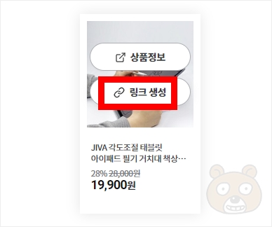 해당 제품에 마우스를 올려보시면 링크생성 버튼이 보일겁니다. 클릭합니다.