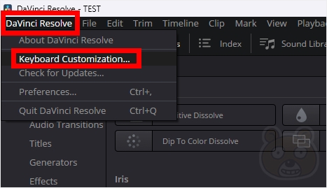 DaVinci Resolve > Keyboard Customization 으로 들어갑니다.