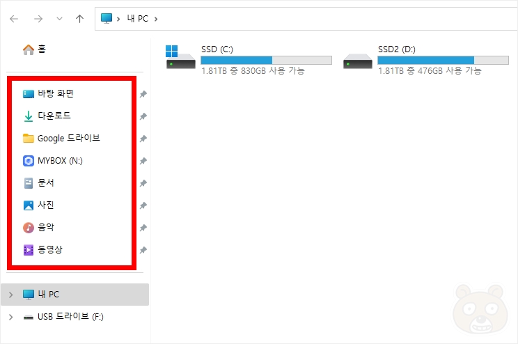 윈도우 폴더를 열어보면 왼쪽에 즐겨찾기 메뉴들이 있습니다. 여기에 원하던 폴더를 드래그해서 잔뜩 등록해놨는데 이게 모두 초기화가 되어버리는 아주 엿가튼 문제가 발생했습니다. 충격적인건 이 상태에서 초기화가 계속 된다는 것입니다. 추가도 안 되고요. 확실히 고장난거죠. 이것 때문에 일주일동안 구글링 검색만 했는데... 소용없는 싸움이었던 것입니다. 만약 해결했으면 대박이었거든요. 아무도 이것과 관련해서 글을 작성하지 않았기 때문입니다. 현재 비슷한 글들은 많습니다. 허나 그 글은 즐겨찾기 폴더에 대한 해결 방법입니다. 제 상황이 아닌 것이죠. 그래서 영어로도 검색해보고 별 짓을 다 했는데 결국은 포맷의 길을 선택해야만 한 것입니다.