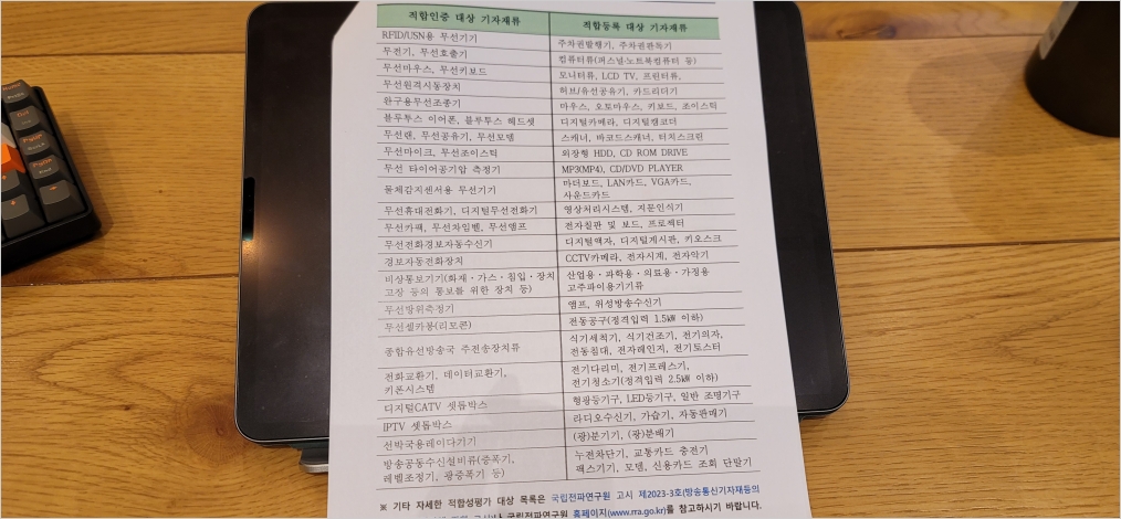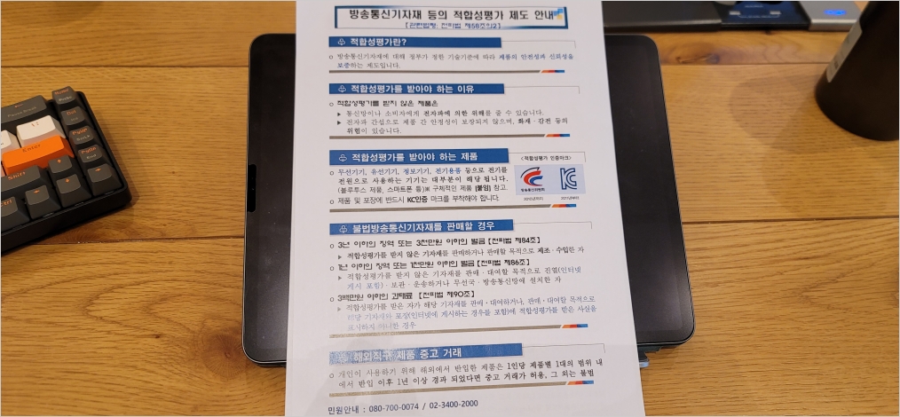 이런 느낌으로 대접받을 줄 알았어요. (크큭...) 웃어주시면서 너무 친절하게 응대해 주시니 다행이었습니다. 전파관리소는 꽤 컸고 조용했습니다. 저는 상담실 비슷한 곳에 들어가서 담당자님과의 상담(?)을 받기 시작했습니다. 가장 먼저 받은 서류는 방송통신기자재등의 적합성평가 제도 안내를 담은 용지였습니다.