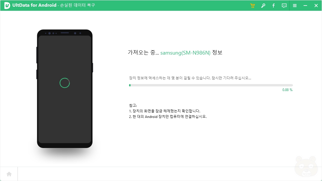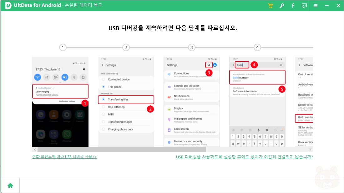 스마트폰 사진 복구 과정에 필요한 설명이 나옵니다. 핵심은 안드로이드 환경의 USB 디버깅을 활성화 하는 것입니다. 다만 테너쉐어에서는 영문으로 설명이 되어있으니 한번 더 한글화된 버전으로 설명드리겠습니다.